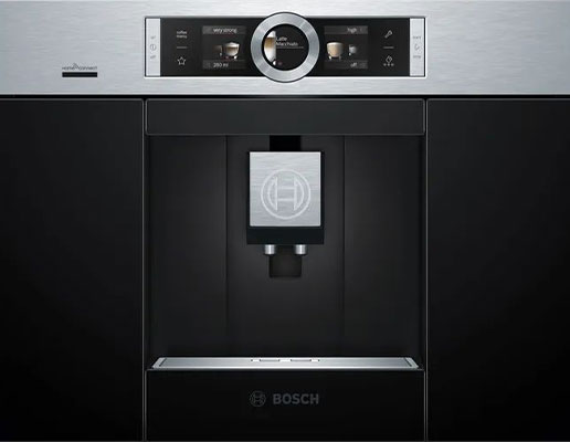 صفحه نمایش اسپرسوساز توکار بوش مدل CTL636ES6 به صورت لمسی می باشد و در وسط پنل حلقه کنترلی قرار دارد که می توانید از این طریق قهوه مورد دلخواه خود را تهیه کنید. این دستگاه به صورت خودکار می تواند اسپرسو، لاته، کاپوچینو را ترکیب و درست کند.