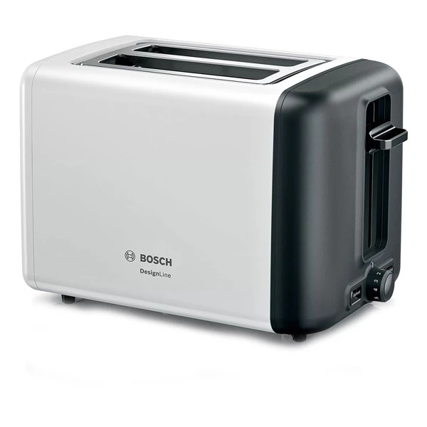 توستر بوش BOSCH مدل TAT3P421 با حداکثر توان 970 وات ، دارای بدنه ای از جنس پلاستیک مقاوم و به صورت عایق حرارت میباشد. در این دستگاه دو جایگاه برای قرار گیری نان تعبیه شده است . توسط توستر بوش میتوان نان های درون منزل را به صورت تازه و برشته میل نمایید. توستر 3P421 بر روی پنل خود دارای یک ولوم چرخشی برای تنظیم حرارت در 6 درجه و کلید های یخ زدایی و توقف عملیات میباشد.