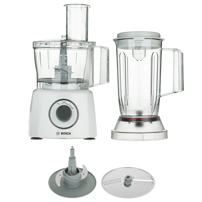 غذاساز برند بوش مدل MCM3200W مجهز به موتور پرقدرت با توان 800 وات بوده، که در دو سطح سرعت لحظه ای و خودکار تنظیم می شود. این غذا ساز بسیار مجهز بوده و دارای مخلوط کن، خرد کن و دیسک های رنده بوده که با خرید آن می توانید در هزینه های خود صرفه جویی کرده و به آشپزی خود سرعت ببخشید. غذا ساز MCM3200W دارای یک کاسه با حجم 2.3 لیتر بوده که ظرفیت کارکرد آن برای میزان استفاده ( آرد 500 گرم ) و حداکثر مقدار مواد دیگر در مقایسه با خمیر (0.8 کیلو گرم) است. به علاوه دهانه ورودی درپوش کاسه این محصول کوچک است، که می توانید برای موارد مختلف از آن استفاده کنید. همچنین پارچ مخلوط کن این دستگاه از پلاستیک ساخته شده و دارای ظرفیت 1.5 لیتری می باشد.
