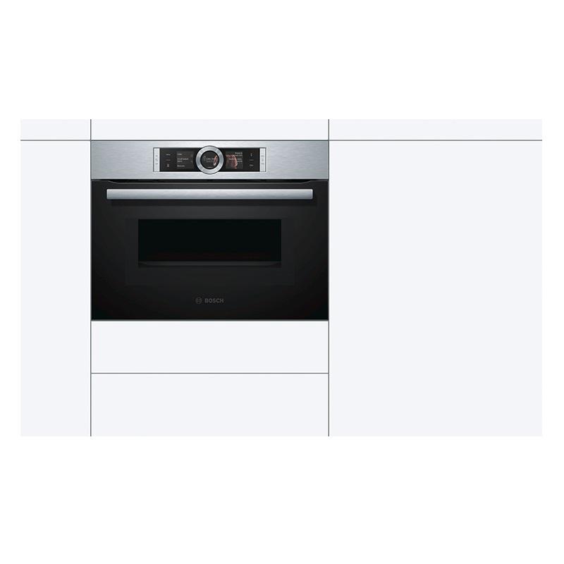 فر مایکروویو کامپکت توکار بوش مدل CMG656BS1 از سری فرهای ساخت آلمان است که دارای طرفیتی در حدود 45 لیتر می باشد و جزو بهترین و آخرین مدل دستگاه های موجود سری 8 هست که رنگ بخش ظاهری آن استیل مشکی می باشد.