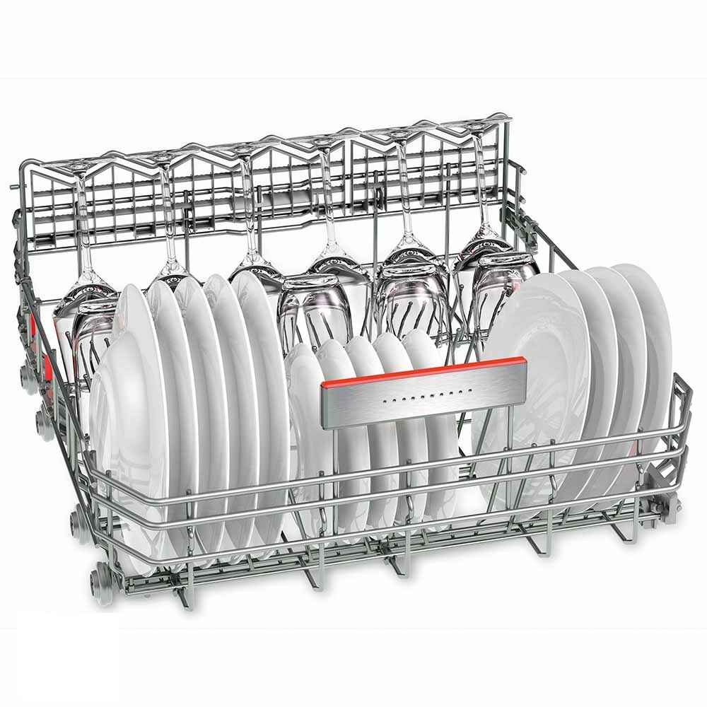 ظرفیت ۱۴ نفره این ماشین ظرفشویی به کاربران اجازه میدهد تا پس از میزبانی از مهمانان، بدون نگرانی از انباشت ظرفهای کثیف از یک شستشوی مؤثر بهرهمند شوند. فضای داخلی با سه سبد مجزا طراحی شده است. سبد اول برای ظروف کوچکتر مانند قاشق، چنگال و فنجان؛ سبد دوم برای لیوان و ظروف متوسط؛ و سبد سوم برای بشقابها و قابلمههای بزرگتر. این تقسیمبندی هوشمندانه نه تنها اطمینان از پاکیزگی کامل ظروف را میدهد بلکه از هدر رفتن فضای داخل دستگاه نیز جلوگیری میکند.