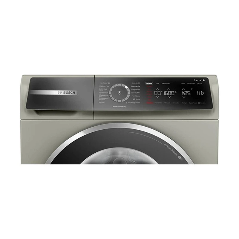 بدنه این لباسشویی سری 8 آلمان به رنگ اینوکس می باشد که نسبت به رنگ استیل مقداری تیره تر است. زبان پنل این دستگاه انگلیسی می باشد و مجهز به سیستم اتصال به خانه است که از راه دور می توانید دستگاه خود را کنترل کنید، در نهایت زندگی روزمره به مراتب راحت تر سپری می شود.